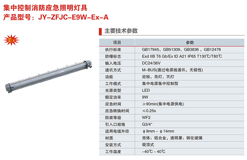 產(chǎn)品中心 防爆消防應(yīng)急燈系列 JY-ZFJC-E9W-Ex-A系列集中控制消防應(yīng)急照明燈具