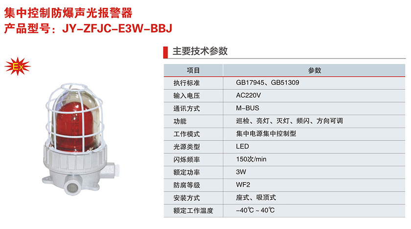 產品中心 防爆消防應急燈系列 JY-ZFJC-E3W-BBJ系列集中控制防爆聲光報警器
