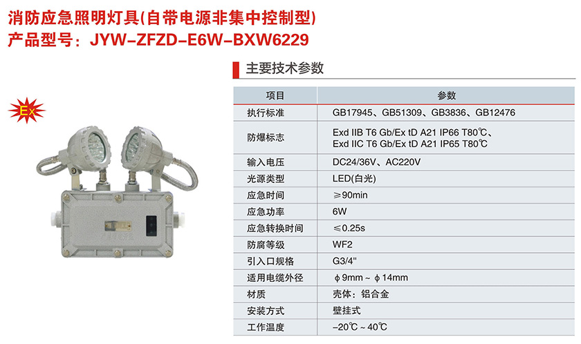 產(chǎn)品中心 防爆消防應(yīng)急燈系列 JYW-ZFZD-E6W-BXW6229系列消防應(yīng)急照明燈具