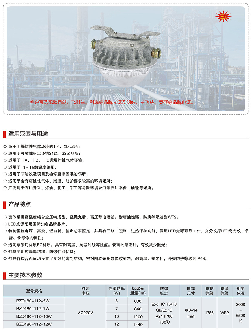 產品中心 LED防爆燈系列 BZD180-112系列防爆免維護LED照明燈(IIC)