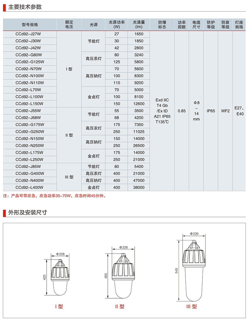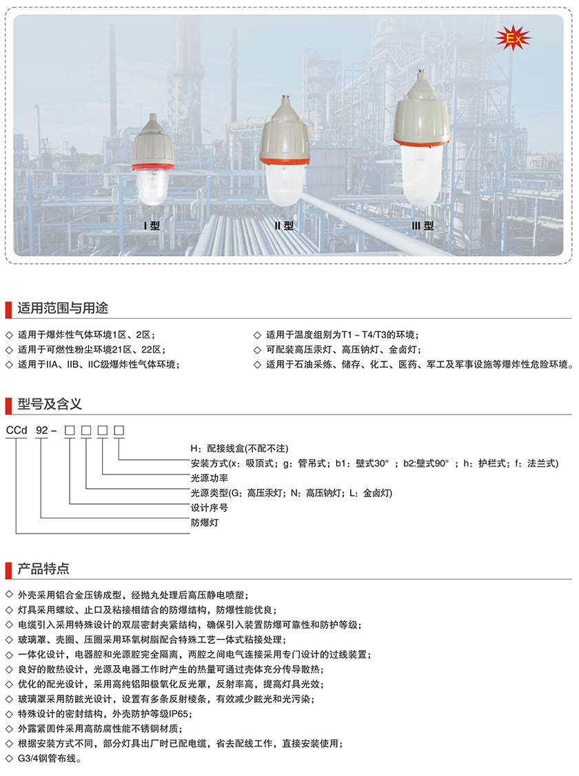 產品中心 廠用防爆燈具系列 CCd92系列防爆照明燈(IIC)