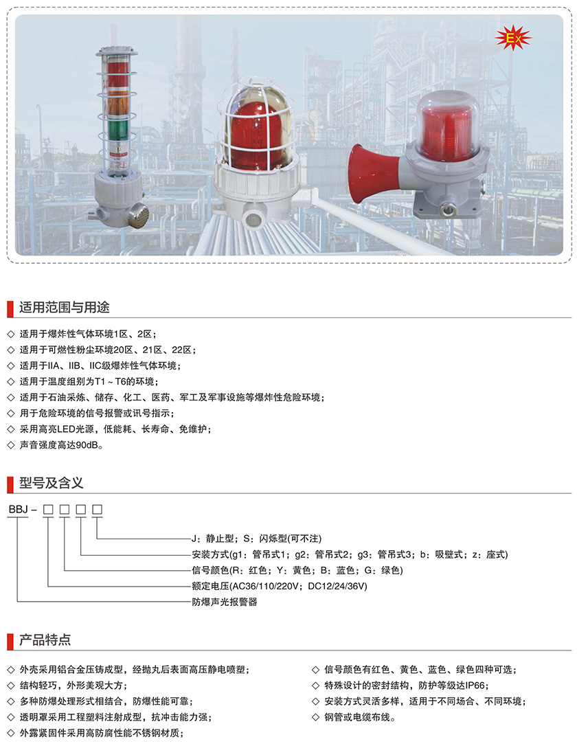 產品中心 廠用防爆燈具系列 BBJ系列防爆聲光報警器(IIB、IIC)