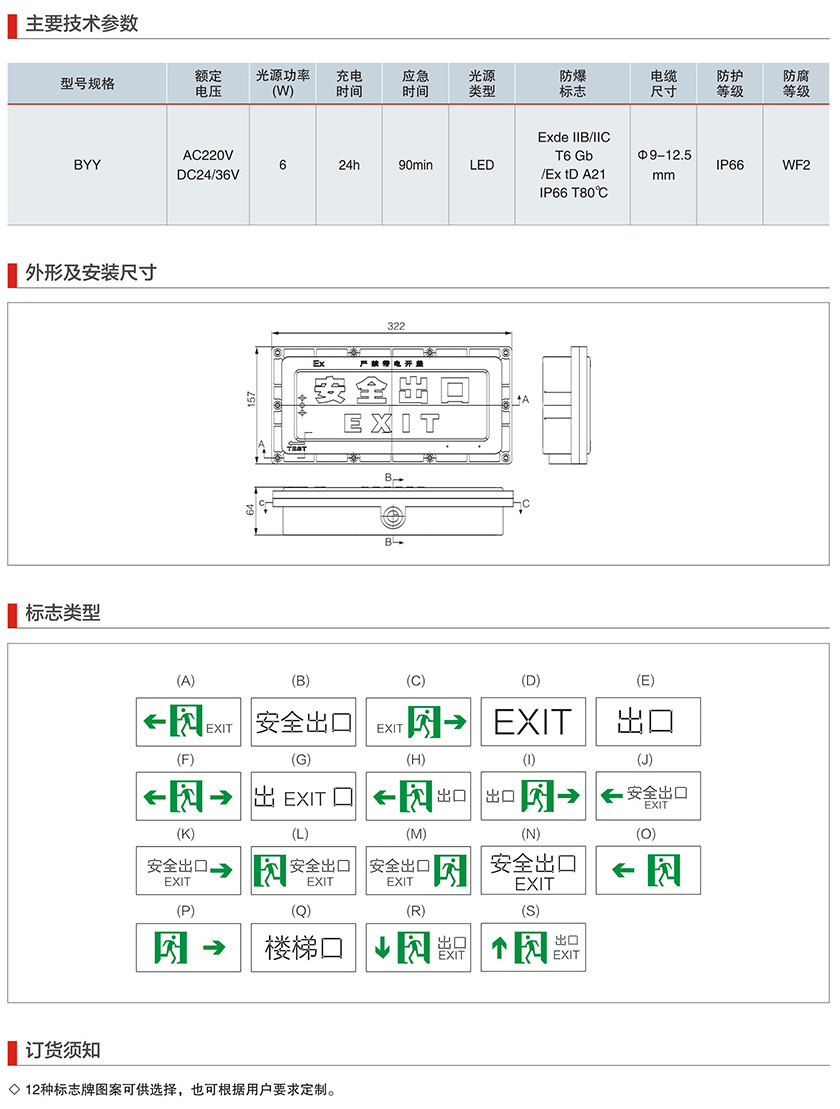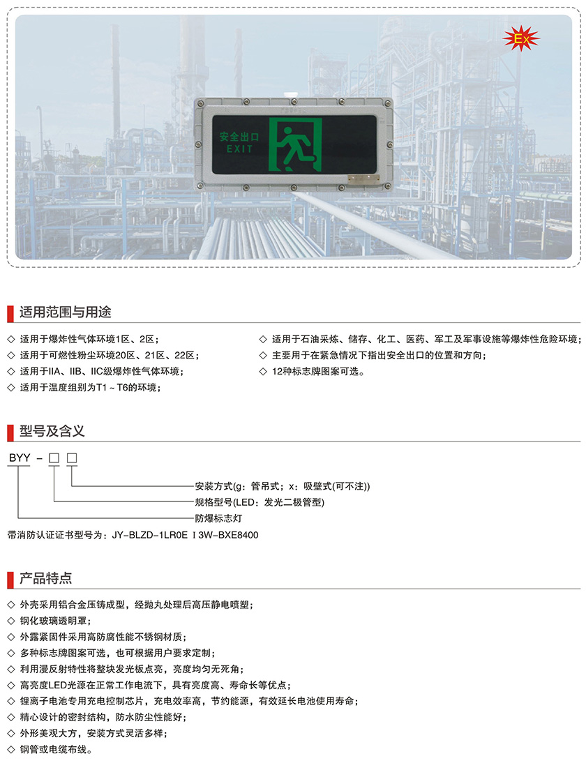 產品中心 廠用防爆燈具系列 BYY系列防爆消防應急標志燈具(IIB、IIC)