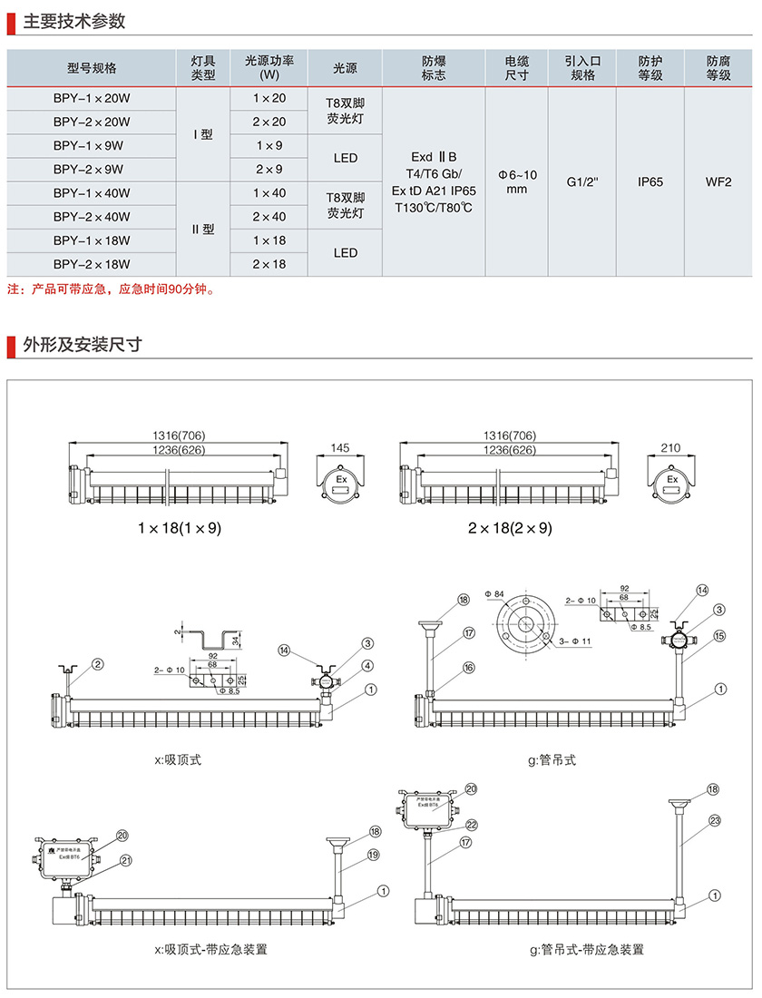 產品中心 廠用防爆燈具系列 BPY系列防爆熒光燈(IIB)