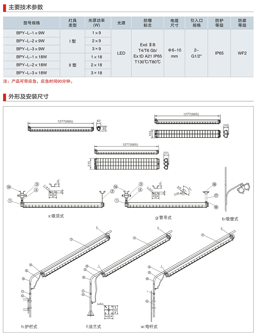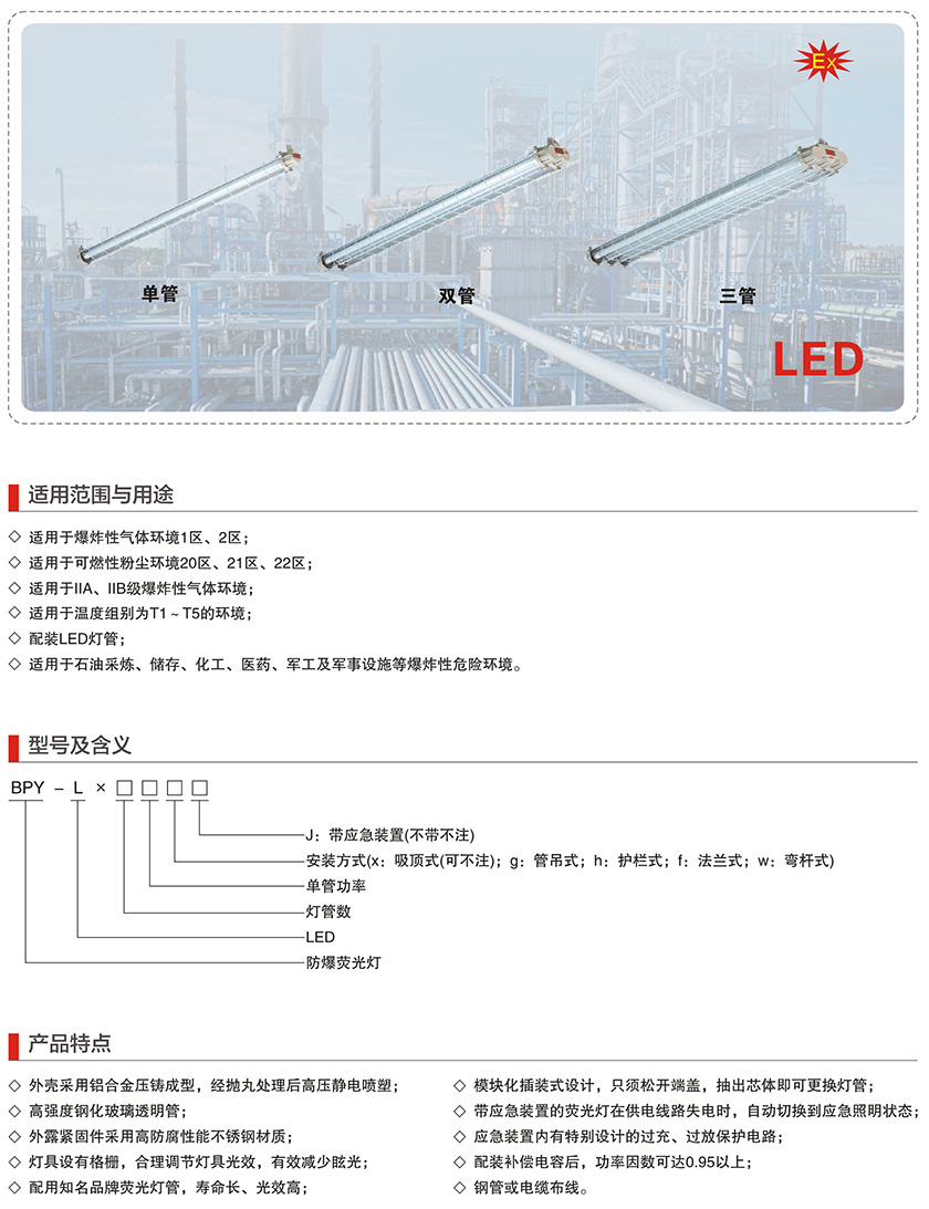 產品中心 廠用防爆燈具系列 BPY-L系列防爆LED熒光燈(IIB)
