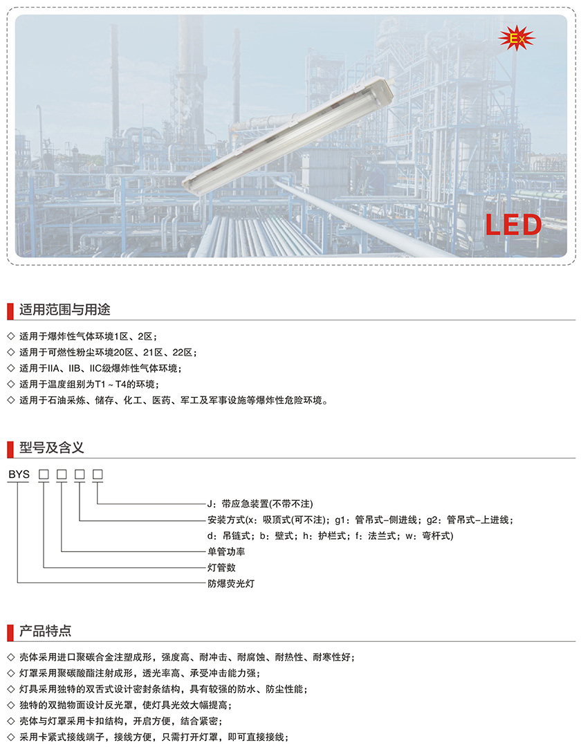 產(chǎn)品中心 廠用防爆燈具系列 BYS系列防爆防腐全塑熒光燈(IIC)