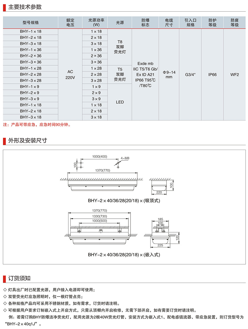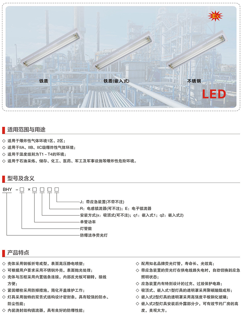 產品中心 廠用防爆燈具系列 BHY系列防爆潔凈熒光燈(IIC)