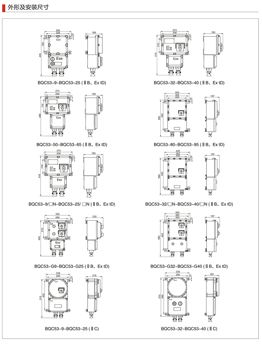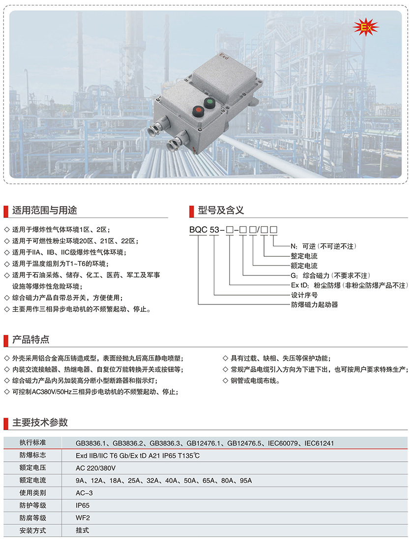 產品中心 防爆電器系列 BQC53系列防爆磁力起動器(IIB、IIC、Ex tD)