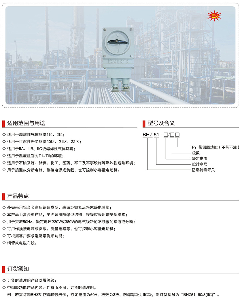 產(chǎn)品中心 防爆電器系列 BHZ51系列防爆轉(zhuǎn)換開(kāi)關(guān)(IIB、IIC、Ex tD)