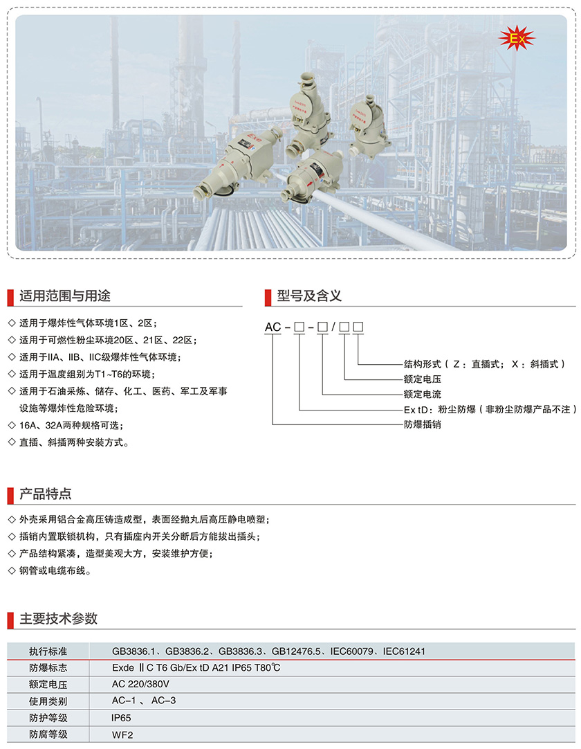 產(chǎn)品中心 防爆電器系列 AC系列防爆插銷(IIC、Ex tD)