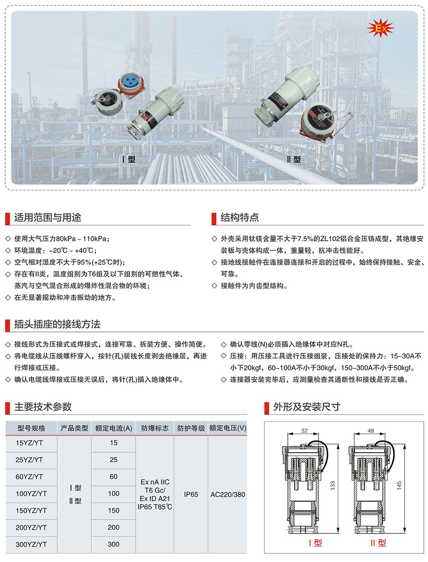 產品中心 防爆電器系列 □YZ/YT系列無火花防爆插銷