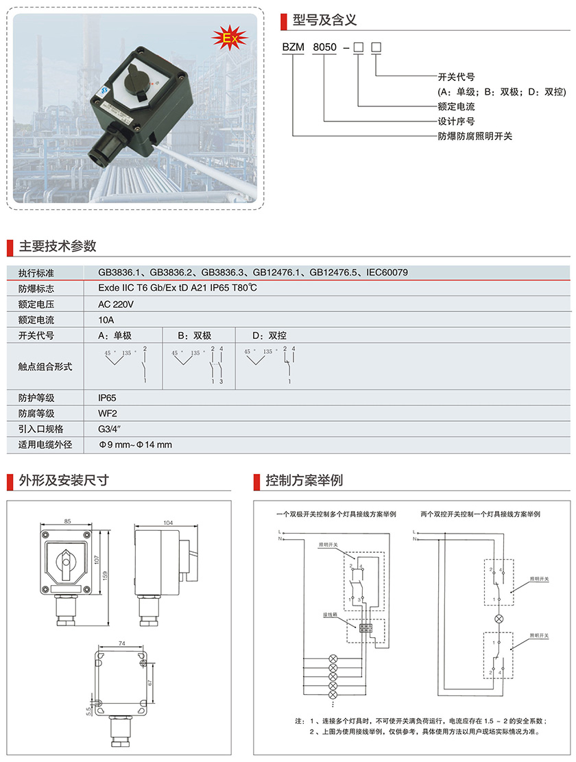 產品中心 防爆防腐電器系列 BZM8050系列防爆防腐照明開關(IIC、Ex tD)