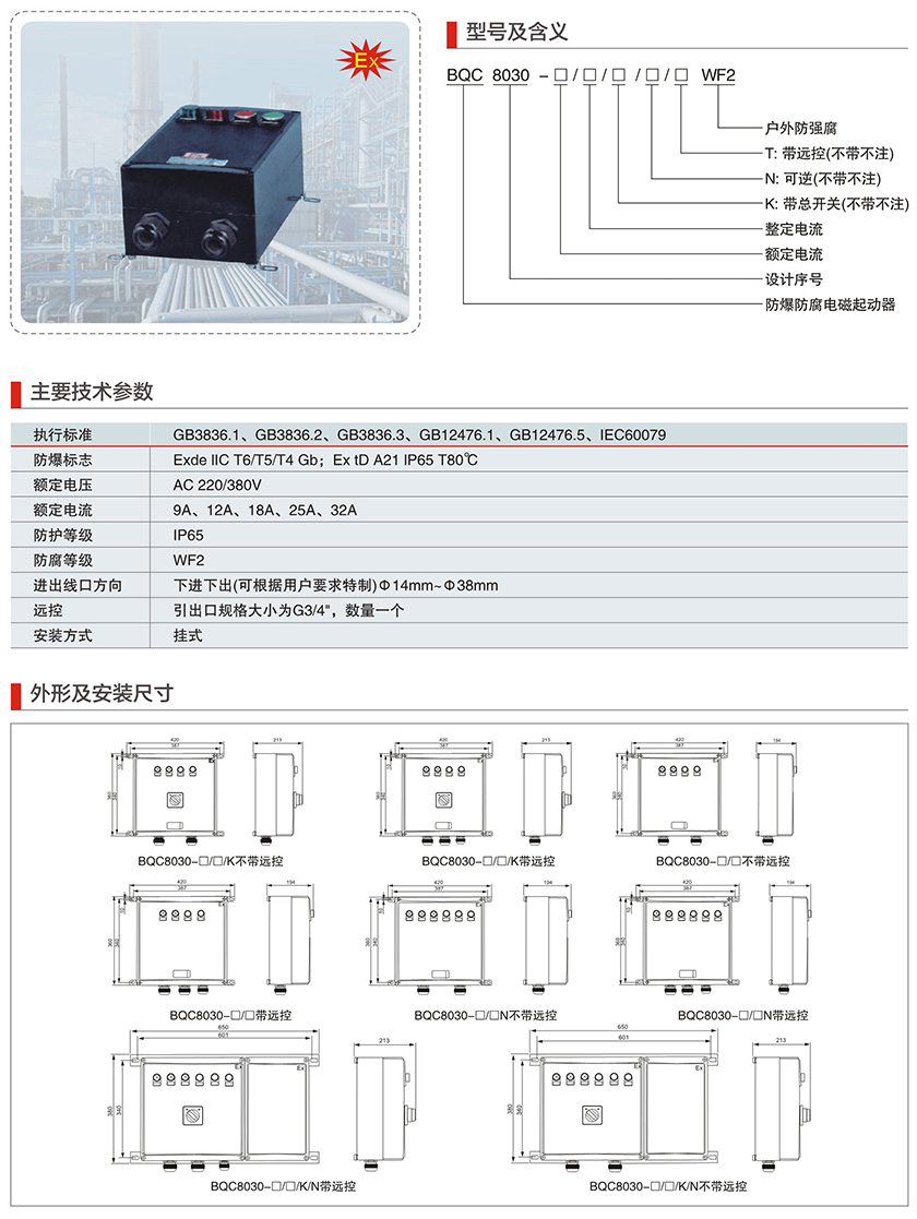 產品中心 防爆防腐電器系列 BQC8030系列防爆防腐電磁起動器(IIC、Ex Td)