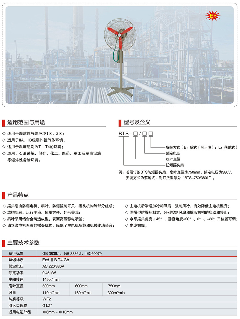 產品中心 防爆風機系列 BTS系列防爆搖頭扇(IIB)