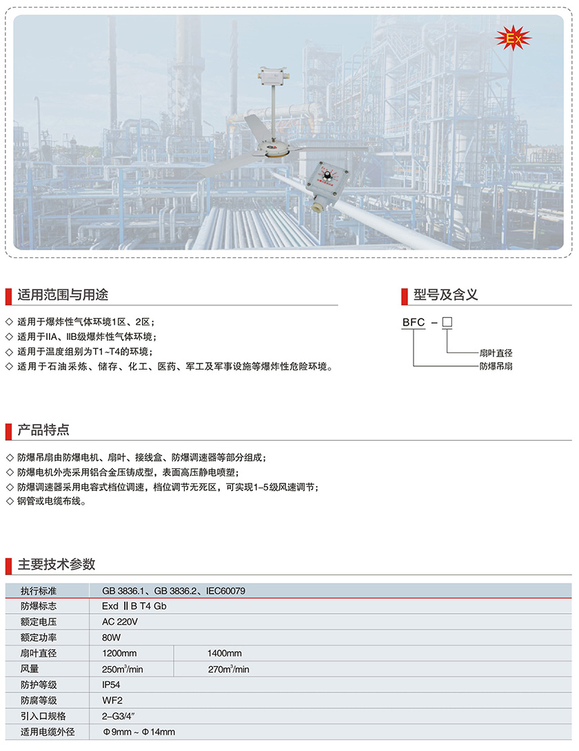 產品中心 防爆風機系列 BFC系列防爆吊扇(IIB)