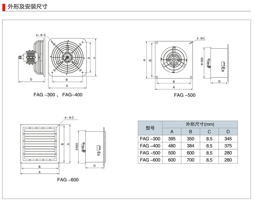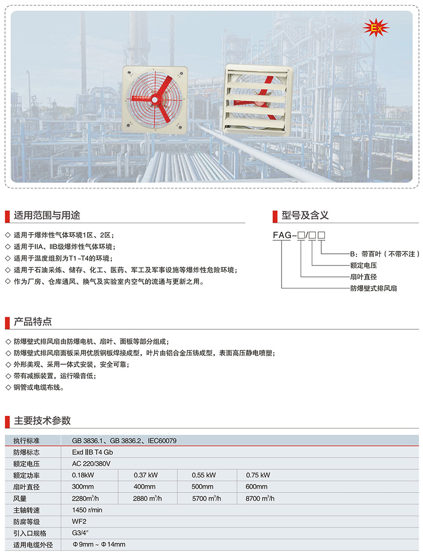 產(chǎn)品中心 防爆風機系列 FAG系列防爆壁式排風扇(IIB)