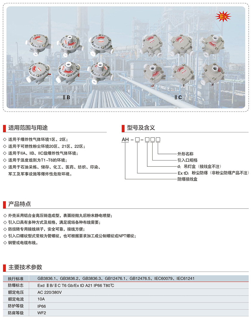 產(chǎn)品中心 防爆管件系列 AH系列防爆接線盒(IIB、IIC、Ex tD)