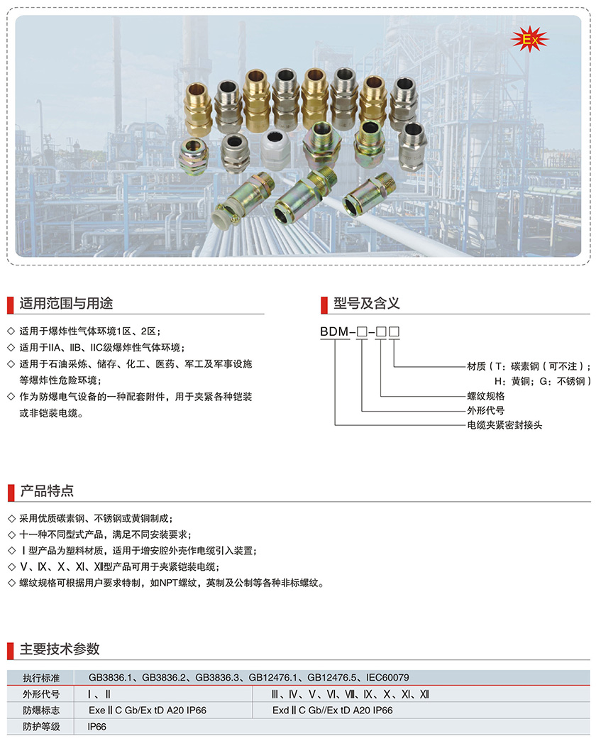 產(chǎn)品中心 防爆管件系列 BDM系列電纜夾緊密封接頭( II、e)